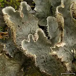 Peltigera canina, commonly known as the dog lichen, is a widely distributed species of foliose lichen in the family Peltigeraceae. It was originally described by Carl Linnaeus in his 1753 work Species Plantarum. German botanist Carl Ludwig Willdenow transferred it to the genus Peltigera in 1787.[2] This species is currently undergoing research as it is likely multiple species under one united name.