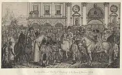 Tomkins was engaged as drawing-master to the daughters of George III, and spent time at court, receiving the appointment of historical engraver to the queen. For some years he carried on business as a print publisher in Bond Street. Ambitious projects involved him in heavy financial losses; he then obtained an act of Parliament, the British Gallery of Pictures Act 1817 (57 Geo. 3. c. lxi) authorising him to dispose by lottery of the collection of watercolour drawings from which his engravings were executed, together with unsold impressions of the plates, together valued at £150,000.[1]