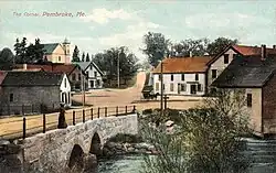 Pembroke also had a stone factory, three sawmills, one gristmill, four shingle mills and four lath machines. Near the head of tide stood the Pembroke Iron Company, established in 1832 and by 1856 producing almost 5,000 tons of iron spikes, rivets and nails a year. Another occupation was agriculture.[4] In 1880, the town's population was 2,324.[5]