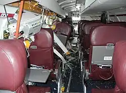 PenAir Flight 3296 was a domestic scheduled flight from Ted Stevens Anchorage International Airport in Anchorage, Alaska, to Unalaska Airport on Amaknak Island in the Aleutian Chain of Alaska. On October 17, 2019, the Saab 2000 operating the flight overran the runway after landing at its destination airport. Of the 42 passengers and crew on board, one passenger (identified as David Allan Oltman) was fatally injured when a propeller blade penetrated the fuselage, one was seriously injured and ten suffered minor injuries.[1] The aircraft was substantially damaged during the accident and written off.[2] It was the last commercial aviation accident in the United States with fatalities until American Airlines Flight 5342 in 2025.