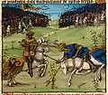 Folio 70r.: Alexander killing Porus in single combat before their armies. -