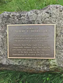 - ^ Peninsula State Park Master Plan Concept Element by Daniel C. Rogers, Gary Patzke, Jordan Korotev, Daniel G. Olson, and Lee Kernen, Wisconsin Department of Natural Resources, April 1980, Section 1. Background Information, Part C. History of the Park, page 2 (page 5 of the pdf)