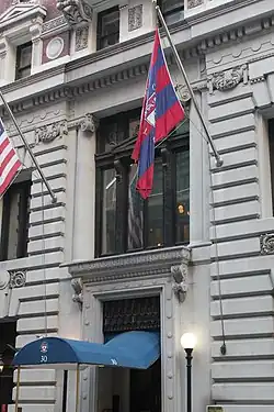 By 1925, DKE wished to sell the building at 30 West 44th Street and relocate to larger headquarters. The Army and Navy Club of America bought the building in June 1925, although DKE planned to remain in the building until it found a new clubhouse.[70][71] The Army and Navy Club had been forced to relocate from its previous clubhouse at 112 West 59th Street, which had been sold to a developer that February.[72] DKE leased space for a new clubhouse at 5 East 51st Street in August 1925 and relocated there.[64][73] The Army and Navy Club moved into the building that October. The club's finances suffered in subsequent years, as the enactment of Prohibition in the United States in 1919 had caused the club's membership to decline.[64] The Army and Navy Club filed for bankruptcy in June 1933;[74][75] at the time, the Army and Navy Club only had 500 members and was struggling to collect $40,000 in membership dues.[64] The clubhouse closed at the end of that month.[76][77]