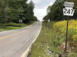 PA 247 enters Clinton Township in Wayne County and becomes White Rock Drive, heading into the residential community of Browndale and turning to the north-northeast. The road continues through forested areas with occasional homes. The route heads east before turning southeast onto Belmont Turnpike, entering agricultural areas with some woods and residences. PA 247 intersects the northern terminus of PA 296, which continues south on Belmont Turnpike, and turns east onto Creamton Road. The road passes through more rural areas, turning northeast and intersecting PA 170 in Creamton. The route heads through more farmland and woodland with some homes, crossing into Mount Pleasant Township and intersecting PA 670. PA 247 heads through more rural areas and curves more to the north, coming to an intersection with PA 371. At this point, the route forms a short concurrency with PA 371 before that route splits to the east in Niagara. The road continues north through more wooded areas with some farmland and residences, passing through Rudes Corner and Rock Lake. PA 247 heads into Preston Township and winds to the northeast, becoming White Rock Drive. The road enters Buckingham Township and turns to the northwest, crossing back into Preston Township. The route passes through another corner of Buckingham Township prior to heading into Preston Township again and passing through the community of Lake Como. PA 247 winds through forested areas near Lower Twin Lake and Upper Twin Lake, ending at an intersection with PA 370 near Preston Park.[2][5]