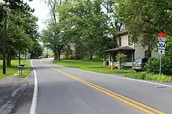 At this point, the name of the route passes several homes, coming to an intersection with the northern terminus of PA 204. After passing through more of the town, PA 304 heads back into agricultural areas with some residences and becomes County Line Road as it runs to the north of Penns Creek.