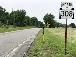 Pennsylvania Route 308 (PA 308) is a 28.5-mile-long (45.9 km) state highway located in Butler and Venango Counties in Pennsylvania. The southern terminus is at PA 8 near Butler. The northern terminus is at State Route 3013 (SR 3013) north of an interchange with the PA 8 expressway in Pearl.