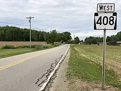 Pennsylvania Route 408 (PA 408) is a 24.2-mile-long (38.9 km) state highway located in Crawford County, Pennsylvania. The western terminus is at US 6/US 19/PA 86 in Cambridge Springs. The eastern terminus is at PA 8 in Hydetown.