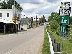 PA 427 begins at an intersection with US 322 in the borough of Sugarcreek in Venango County, heading northwest on a two-lane undivided road. The route parallels US 322 before turning north past a few rural homes. The road heads northeast into farmland, turning east before curving north into wooded areas, running to the east of Sugar Creek. PA 427 turns west to cross the creek, curving north into agricultural areas with some woods and residences. The route continues into Jackson Township and turns northeast to cross Sugar Creek again before making another curve to the north. The road heads into the borough of Cooperstown and becomes South Main Street, heading into residential areas and turning northeast to run along the east bank of Sugar Creek. PA 427 turns west onto Factory Street and crosses the creek prior to heading northwest onto North Main Street and passing a few businesses. The route turns north onto Academy Street and runs between homes the west and the Sugar Creek to the east, curving to the northeast. The road becomes Bradleytown Road as it heads back into Jackson Township and runs north through open farmland with occasional residences. PA 427 continues through areas of farms and woods as it passes through Plum Corners. The road heads into more wooded areas with some farm fields as it crosses into Plum Township and turns to the northeast. The route crosses Sugar Creek again and comes to Bradleytown, where it turns north to remain along Bradleytown Road. PA 427 heads through more agricultural areas with some woods and homes, crossing the creek.[2][3] The route enters Troy Township in Crawford County and immediately ends at PA 27.[2][4]