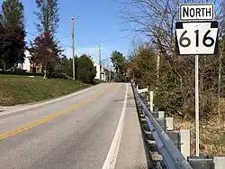 Pennsylvania Route 616 (PA 616) is a 14.9-mile-long (24.0 km) state highway located in York County in Pennsylvania. The southern terminus is at PA 851 in Railroad. The northern terminus is at U.S. Route 30 (US 30) in West Manchester Township. PA 616 is a two-lane undivided road that passes through rural areas in southwestern York County, serving the communities of Glen Rock, Seven Valleys, and New Salem. The route forms a concurrency with PA 216 in Glen Rock and intersects the western terminus of PA 214 in Seven Valleys.