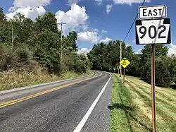 Pennsylvania Route 902 (PA 902) is an 11.66-mile-long (18.76 km) east–west state highway in Carbon County in the U.S. state of Pennsylvania. The route runs from U.S. Route 209 (US 209) in Lansford southeast to PA 443 in Lehighton. The highway is a two-lane undivided road its entire length. From Lansford, PA 902 heads southeast passes through Summit Hill before crossing two mountains and entering the Mahoning Valley. The route turns east at New Mahoning and continues to Lehighton, where it turns south to end at PA 443 in the western part of the borough. The route was designated between US 209 near Summit Hill and New Mahoning in 1928. PA 902 was extended east to US 209/US 309 in the center of Lehighton in the 1930s and rerouted to end at PA 443 in the 1980s.