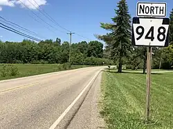Pennsylvania Route 948 (PA 948) is a 38.5-mile-long (62.0 km) state highway located in Elk, Forest, and Warren counties in Pennsylvania. The southern terminus is at PA 255 in Fox Township. The northern terminus is at PA 666 near Sheffield Township.