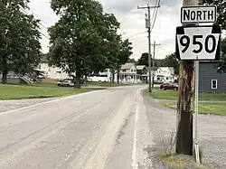PA 950 begins at an intersection with US 322 in the borough of Reynoldsville, heading northeast on two-lane undivided Broadway Street. The road heads through residential areas a short distance to the west of a Buffalo and Pittsburgh Railroad line. The road crosses into Winslow Township and becomes Reynoldsville-Falls Creek Road, continuing through forested areas with occasional development, running to the west of the railroad line and Sandy Lick Creek. PA 950 curves to the east at Sandy Valley and passes through more woodland. Upon reaching the community of Pancoast, the route turns northeast again and continues into the borough of Falls Creek, where the name changes to 3rd Street. In this area, the road passes homes and curves north away from the creek and railroad line. PA 950 reaches its northern terminus at an intersection with PA 830.[2][3]