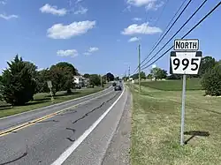 Pennsylvania Route 995 (PA 995) is a 19-mile-long (31 km) north–south state route in south central Pennsylvania. The southern terminus of the route is at PA 75 in Claylick. The northern terminus is at U.S. Route 30 (US 30) west of Chambersburg. The road carries the names Welsh Run Road, Lemar Road, and Warm Spring Road. PA 995 is a two-lane undivided road that runs southwest-northeast through farmland in southwestern Franklin County. The route crosses PA 416 in Welsh Run and forms a concurrency with PA 16 in Upton. PA 995 was designated in 1928 between Williamson and US 30 west of Chambersburg. The route was extended southwest to PA 75 in Claylick in 1937, with the road paved in the 1930s.
