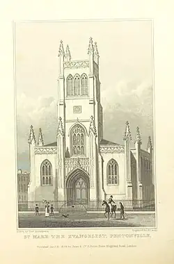 The area is named after Henry Penton, who developed a number of streets in the 1770s in what was open countryside adjacent to the New Road.[1] Pentonville was part of the ancient parish of Clerkenwell, and was incorporated into the Metropolitan Borough of Finsbury by the London Government Act 1899. It has been part of the London Borough of Islington since 1965. There was a Pentonville ward from 1965 to 1978, electing three councillors to Islington London Borough Council.