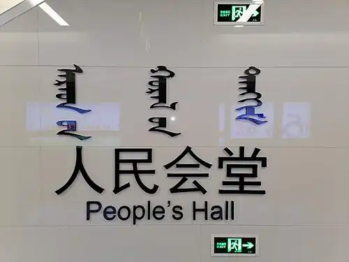 People's Hall Station (Chinese: 人民会堂站) is a station on Line 1 of the Hohhot Metro.[1] It opened on 29 December 2019.[2]
