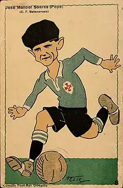 José Manoel Soares (30 January 1908 – 24 October 1931), known as Pepe, was a Portuguese footballer. During his brief career, he played as an inside forward for CF Belenenses and the Portugal national football team, and was considered by many to be Portugal's best player of the time. Despite the young age at which he died, Pépe won two Portuguese Championships (Taça de Portugal) and three Lisbon Championships (Campeonato de Lisboa).