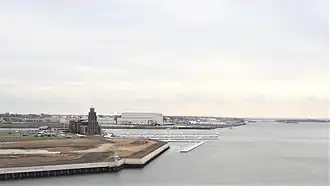 Prior to the arrival of Europeans, the Pequonnock Indians of the Paugussett nation lived on the banks of the river. One village on the west bank of the Pequonnock consisted of about five or six hundred inhabitants in approximately 150 lodgings.[15] The first English settlement on the west bank of the mouth of the Pequonnock was made in about 1665 and was called Pequonnock.[16] This village was renamed Newfield sometime before 1777.[17] During the American Revolution, Newfield was a center of privateering.[18] In 1800, Newfield village was chartered as the borough of Bridgeport, forming the center for the city of Bridgeport.[19]