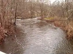 ![]() Upriver view from the Daniels Farm Road bridge in Trumbull, CT. | |
