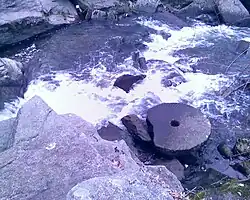 In January 1722, Gideon and Ephraim Hawley agreed to build or rebuild a mill or mills on the stream of the Pequonnock River at the narrows by White Plain just west of White Plains Road.[20] In the mid-18th century, Daniel Hawley built a mill "at the spring on the Pequonnock River" along White Plains Road just north of Daniels Farm Road in Trumbull Center. Daniel, who resided just northeast of the present bridge, was a grand nephew of Gideon and Ephraim Hawley and great grandson of Ephraim Hawley.