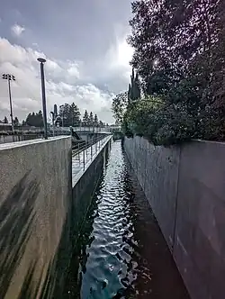 Permanente Creek is a 13.3-mile-long (21.4 km)[3] stream originating on Black Mountain in Santa Clara County, California, United States. Named by early Spanish explorers as Arroyo Permanente or Río Permanente because of its perennial flow,[1] the creek descends the east flank of Black Mountain then courses north through Los Altos and Mountain View, discharging into southwest San Francisco Bay historically at the Mountain View Slough but now virtually entirely diverted via the Permanente Creek Diversion Channel to Stevens Creek and Whisman Slough in San Francisco Bay.[4]