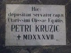 Petar Kružić (16 October 1491 – 12 March 1537) was a Croatian knez, captain, soldier and defender of Klis, and the captain of Senj.