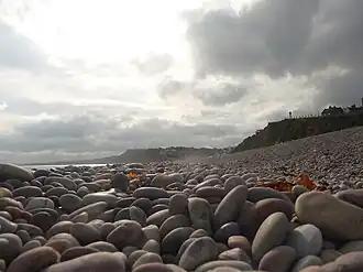 The pebble beach at Budleigh Salterton, a site for Dent's earlier meditative poetry