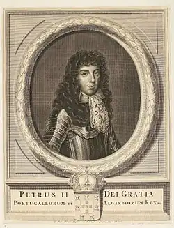Dom Pedro II (Peter II; 26 April 1648 – 9 December 1706), nicknamed the Pacific (Português: O Pacífico) was King of Portugal from 1683 until his death, previously serving as regent for his brother Afonso VI from 1668 until his own accession.[1] He was the fifth and last child of John IV and Luisa de Guzmán.