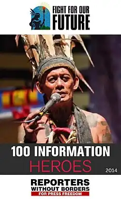 - 100 Information Heroes (2014) - Reporters Without Borders (one of the world's prestigious award) in commemoration of the World Press Freedom Day 2013 for courage in defending press freedom through independent grassroots media. The recognition acknowledged his bold role in promoting transparency and spreading information through Radio Free Sarawak broadcasting vital voices from rural Sarawak despite government restrictions.