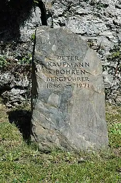 At the age of 85, while visiting his family in Thun, Switzerland, Peter Kaufmann-Bohren suffered a stoke. He died on the anniversary of his birth, June 23, 1971, and was buried in the Grindelwald cemetery.[55] A gravestone in his memory has been preserved.