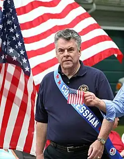 In 2006, Nassau county legislator Dave Mejias challenged King. While some pundits believed this race would be close due to dissatisfaction with George W. Bush,[17] King defeated Mejias 56% to 44%. King again sought re-election to Congress in 2008. The Democrats fielded 25-year-old newcomer Graham Long in a long-shot bid to defeat King.[18] King won the 2008 election with 64% of the vote.