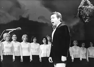 Peter Schreier made his professional debut at the Dresdner Staatsoper in 1957, as the First Prisoner in Beethoven's Fidelio.[2] His breakthrough came in 1962 as Belmonte in Mozart's Die Entführung aus dem Serail,[1][5] and he also appeared as Tamino in The Magic Flute. In 1963, he became a member of the Berlin State Opera.[4] Starting in 1966, he was for many years an annual guest of the Vienna State Opera. That same year he made his debut at the Bayreuth Festival as the young seaman in Tristan und Isolde with Karl Böhm as conductor. For 25 years, beginning in 1967, he took part in the program of the annual Salzburg Festival. In 1969, he starred as The Witch in Engelbert Humperdinck's Hansel and Gretel, in a CD recording that featured the Staatskapelle Dresden. He performed more than 60 operatic roles.[6][7] It was important to him to sing the title role of Palestrina, the opera by Hans Pfitzner, not only in Munich but also in East Berlin — a controversial issue at the time in East Germany.