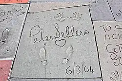 After his father's death in October 1962, Sellers decided to leave England and was approached by director Blake Edwards, who offered him the role of Inspector Clouseau in The Pink Panther after Peter Ustinov had backed out of the film.[124] Edwards later recalled his feelings as "desperately unhappy and ready to kill, but as fate would have it, I got Mr. Sellers instead of Mr. Ustinov—thank God!"[125] Sellers accepted a fee of £90,000 (£920,000 in 2024 pounds)[126] for five weeks' work on location in Rome and Cortina.[127] The film starred David Niven in the principal role, with two other actors—Capucine and Claudia Cardinale—having more prominent roles than Sellers.[128] However, Sellers's performance is regarded as being on par with that of Charlie Chaplin and Buster Keaton, according to biographer Peter Evans.[128] Although the Clouseau character was in the script, Sellers created the personality, devising the costume, accent, make-up, moustache and trench coat.[123]
