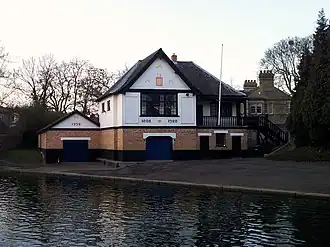 Peterhouse owns its own boathouse. The current building being the second boathouse to be built on the land. The first dated to 1897 and cost £880, including £280 for the land.[14] It was replaced in 1928 with the current structure at a cost of £4000. It was designed by Montague Wheeler, who was also responsible for the design of the boat house for Trinity Hall Boat Club. The boathouse was extended in 1992 with a new shed to accommodate fours and small boats. Space in the boat house is currently leased to Murray Edwards College.