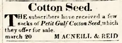 - ^ "Petit Gulf Cotton". The Weekly Natchez Courier. 1871-04-08. p. 2. Retrieved 2024-07-14.