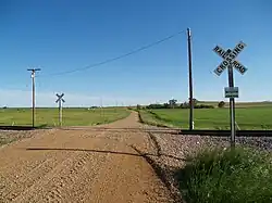 ![]() Sign along the railroad tracks in Petrel, North Dakota | |