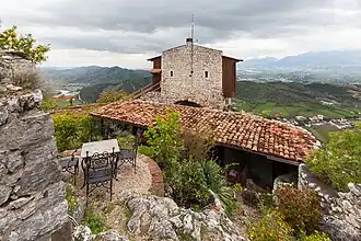 The Petrela Castle was part of the signaling and defense system of Krujë Castle. The castles signaled to each other by means of fires.[3][4][5] During Skanderbeg’s fight against the Ottomans, the Petrela Castle used to be under the command of Mamica Kastrioti, Skanderbeg's sister.[6][7][8][9] Today there is a restaurant inside the castle. The castle site has views of the Erzen valley, the hills, olive groves, and surrounding mountains.