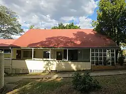 The district's population continued to increase during the 1960s and 1970s. By 1964, along with the construction of two classroom blocks in the western corner of the school grounds (c.1959), classrooms had been added to the south-east corner of the Stanley building and to the north-west of the Ferguson building, connected by verandahs.[39] In 1973 the partition inside the Stanley building was removed and it became a library, while the Ferguson building was used for administration. Further buildings were added to the school grounds in the 1970s, 1980s and 1990s. The size of the school grounds also increased in the second half of the 20th century, growing from 2.4 hectares (5.9 acres) in 1957 to its current size of 4.5 hectares (11 acres).[1]