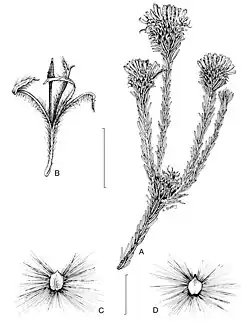 | A=flowering and fruiting branchlet; B=flower; C=upper and lower surfaces of nut | |