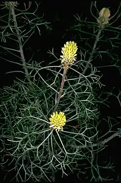 Petrophile sessilis, known as conesticks,[2] is a species of flowering plant in the family Proteaceae and is endemic to New South Wales. It is an erect shrub with rigid, needle-shaped, divided, sharply-pointed leaves, and oval, spike-like heads of silky-hairy, creamy-yellow flowers.