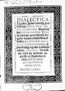 - Dialectica legalis iuris utriusque (in Latin). Venezia: Guglielmo da Fontaneto. 1533.