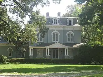 The original house on the site, an 1862 construction that was built for $5,000, was destroyed by fire on December 13, 1865.[6][7] A new brick building was constructed in 1868 in the Second Empire style for the cost of $12,000.[7] A Colonial Revival porch and porte-cochere were added in 1900.[8][9] Its original address was 464 Moss Avenue[2][10] before Peoria's address renumbering in the 1950s. The last resident was Miss Jean Morron, who lived there from 1953 until she died in 1966; the Peoria Historical Society acquired the house in 1967.[2]