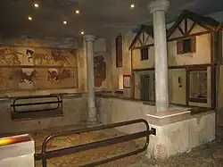 The nearby villa at Brantingham, just outside Brough, was first discovered in 1941 and would have been closely associated with the Roman town until it burnt down some time in the mid-4th century AD. This Roman site attracted modern notoriety to Brough in 1948, when a team of archaeologists from the Hull and East Riding Museum prepared the first of a group of mosaic pavements found at the villa site (a working quarry since the Middle Ages) during the war, for removal. Overnight it was stolen and although the rest were safely recovered to the museum and are on display to this day, the missing first one has never been found.