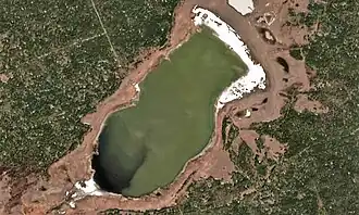 The lake is surrounded by forest steppe. There are also sand dunes.[2][4]