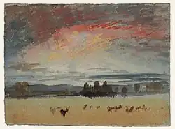 It was George Wyndham, 3rd Earl of Egremont (1751–1837), who solidified the house's reputation as one of fine art. He inherited the house in 1763 and began what has been termed a 'Golden Age' of Petworth when he expanded his collection of contemporary art and expanded and changed the house in order to display it best, in particular through the addition of the North Gallery in 1824–5.[9] He was patron to many contemporary artists including J. M. W. Turner and John Constable who were frequent guests to the house and painted the house and its parkland frequently - this has more recently helped inform restorations to the house and parkland.[9][5]