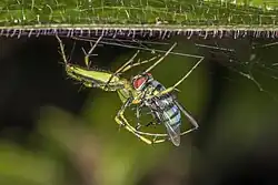 Malagasy green lynx spider (P. lucasi) and green bottle fly (Lucilia sp.)