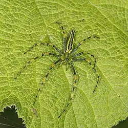 • Peucetia viridans (Hentz, 1832) — North & Central America, Caribbean, Venezuela