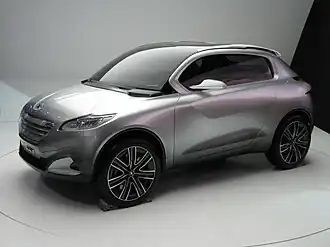 The Peugeot HR1 is a concept car that was designed by Peugeot for the 2010 Paris Motor Show. It is a supermini SUV and features an innovative hybrid powertrain. Instead of using a diesel linked to an electric motor like in the Peugeot 3008 and Peugeot 508, it uses a 1.2-litre petrol engine. CAR compared the car’s styling being “sort of like the shrunken Range Rover Evoque.”[1]