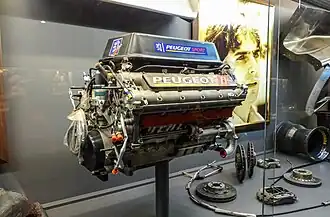 The Peugeot V10 engine is a series of naturally-aspirated, V10, racing engines; produced between 1990 and 2000. These engines were used to compete in the World Sportscar Championship, between 1990 and 1993, with Peugeot winning the 24 Hours of Le Mans two years in a row (1992 and 1993). In 1994, they decided to make the switch to Formula One, using the same 3.5 L V10 derived from their highly successful, Le Mans-winning 905 Group C sports prototype, that was easily adjusted to F1 regulations. Peugeot debuted as an engine supplier with the McLaren team and remained in F1 until the end of the 2000 season.[1][2]