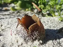 Peziza ammophila is a fungus in the cup fungus genus Peziza. It grows on sand dunes and beaches. As it gets older, it comes out from the sand and splits. It grows in winter and spring, and there are records from North America, Argentina, Chile, Uruguay, the UK, Europe, Australia and South Africa.[1] It is cup shaped. The Dutch call these Zandtulpjes, or "sand tulips."[2]