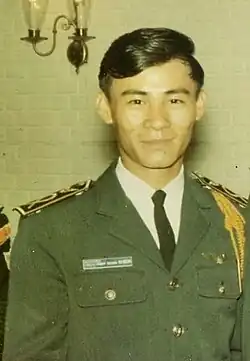 In November 1969, Khiêm attended Lackland Air Force Base (AFB) to learn English as part of his cadet training.[4] He continued his education at Randolph Air Force Base, where he completed basic pilot training, followed by advanced flight training at Keesler Air Force Base, where he flew the T-28 Trojan aircraft. From October to December 1970, he trained at Lockbourne Air Force Base. Khiêm was later assigned to pilot C-123K aircraft and eventually became a pilot for the 53rd Tactical Wing, 435th Transport Squadron, flying C-130A aircraft.